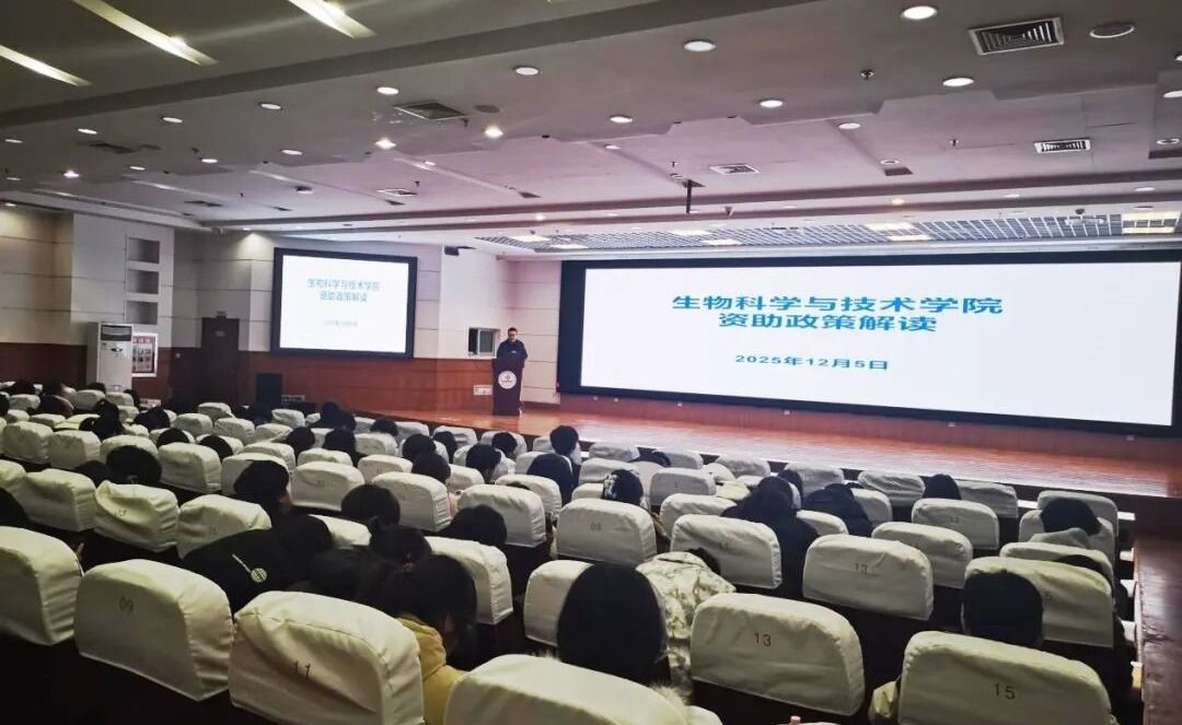 为帮助2025级新生全面了解国家与学校的各项资助政策,解除家庭经济困难学生的后顾之忧,生物科学与技术学院于12月5日在学校第二学术报告厅组织召开“资助政策解读”专题会议。会议由学院资助辅导员李立衡主持,全体大一新生参加。