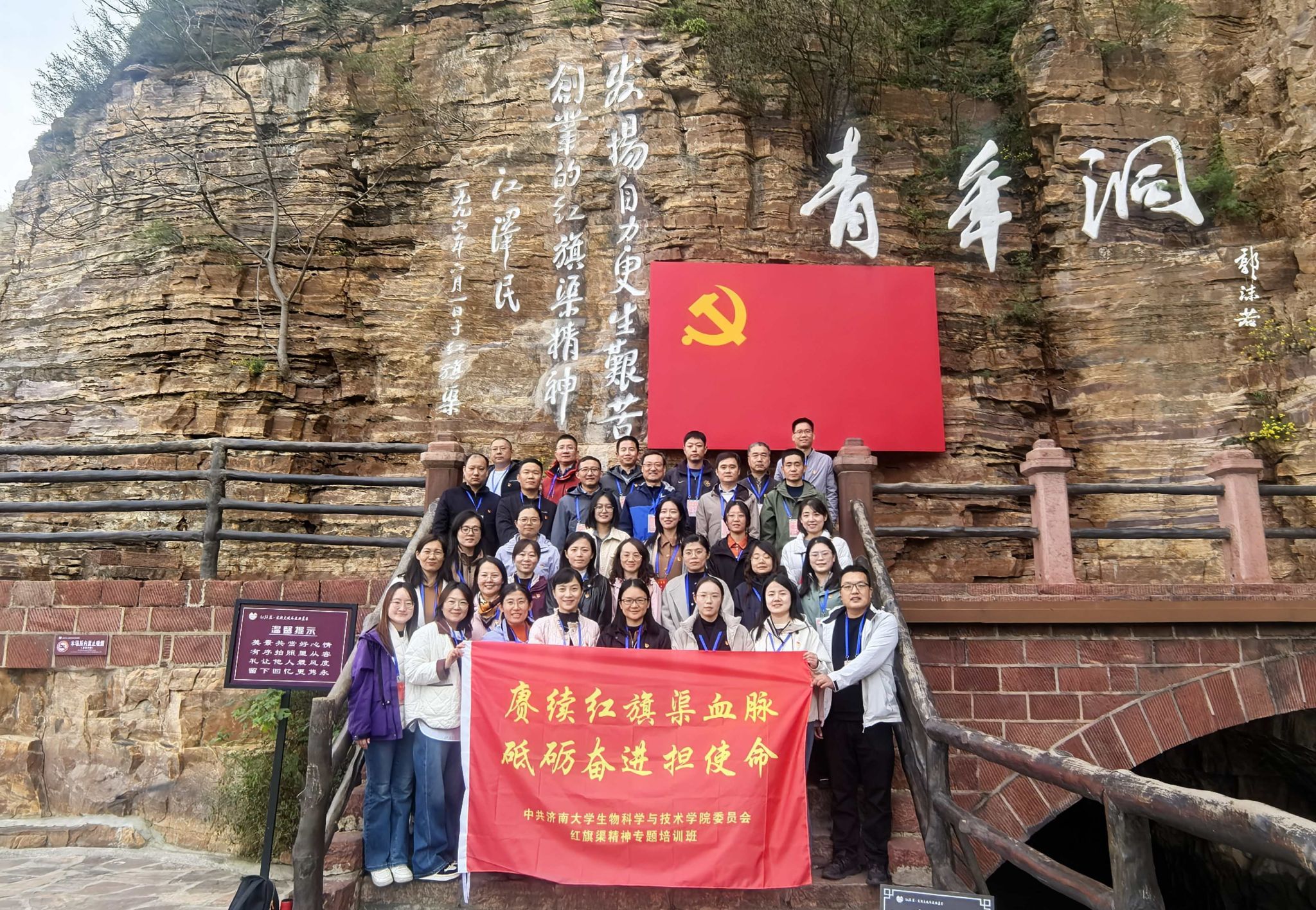 为深入学习贯彻习近平新时代中国特色社会主义思想,传承红色基因,锤炼党性修养,10月25日,生物科学与技术学院党委组织教职工党员,由学院党委书记史国普、院长秦晓春带队,赴红旗渠开展“赓续红旗渠血脉,砥砺奋进担使命”党性学习教育活动。