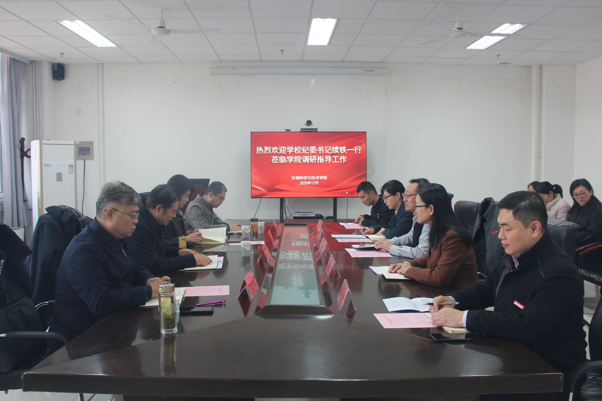 12月19日上午,校党委常委、纪委书记、省监委驻校监察专员续铁一行到生物科学与技术学院调研指导工作,并与学院领导班子开展集体廉政谈话。纪委副书记孙菲菲、党委巡察工作领导小组办公室主任丁立波、纪委监察专员办公室综合处处长张存凯陪同调研。学院领导班子成员、全体系主任和科级干部参加活动。