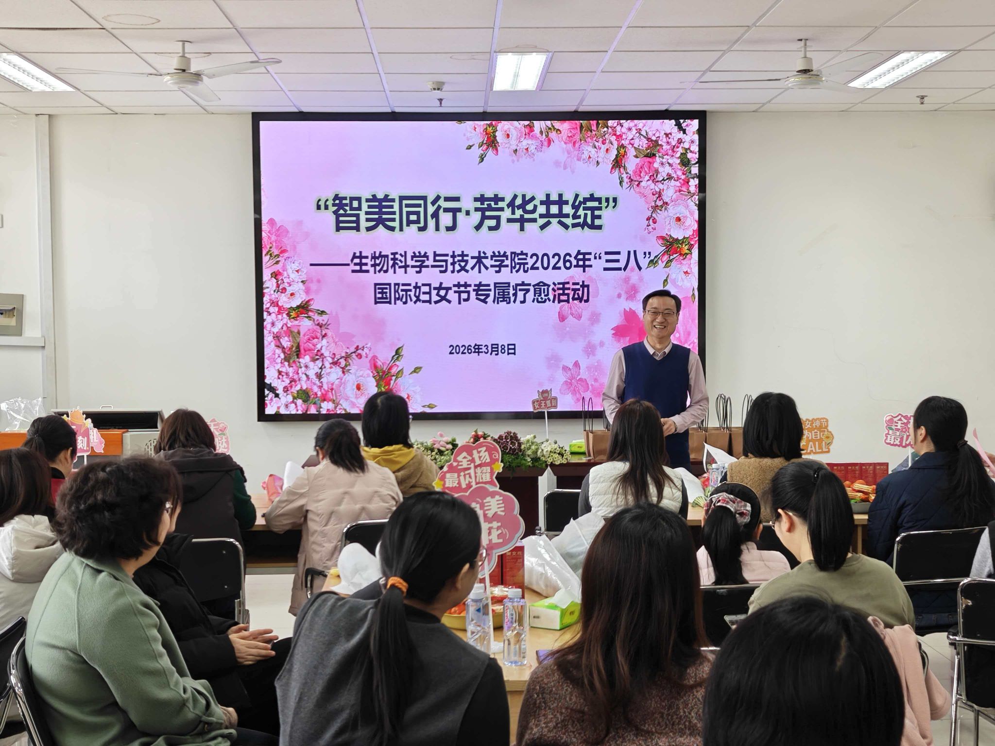 春回大地,芳华竞展。3月8日上午,生物科学与技术学院“三八”国际妇女节专属疗愈活动在特教楼会议室温馨启幕。学院女教职工齐聚一堂,在科学与美学的交融中暂别案牍,共赴一场滋养身心的“她之约”,以特别的方式致敬教学、科研、管理与服务一线的“她力量”。